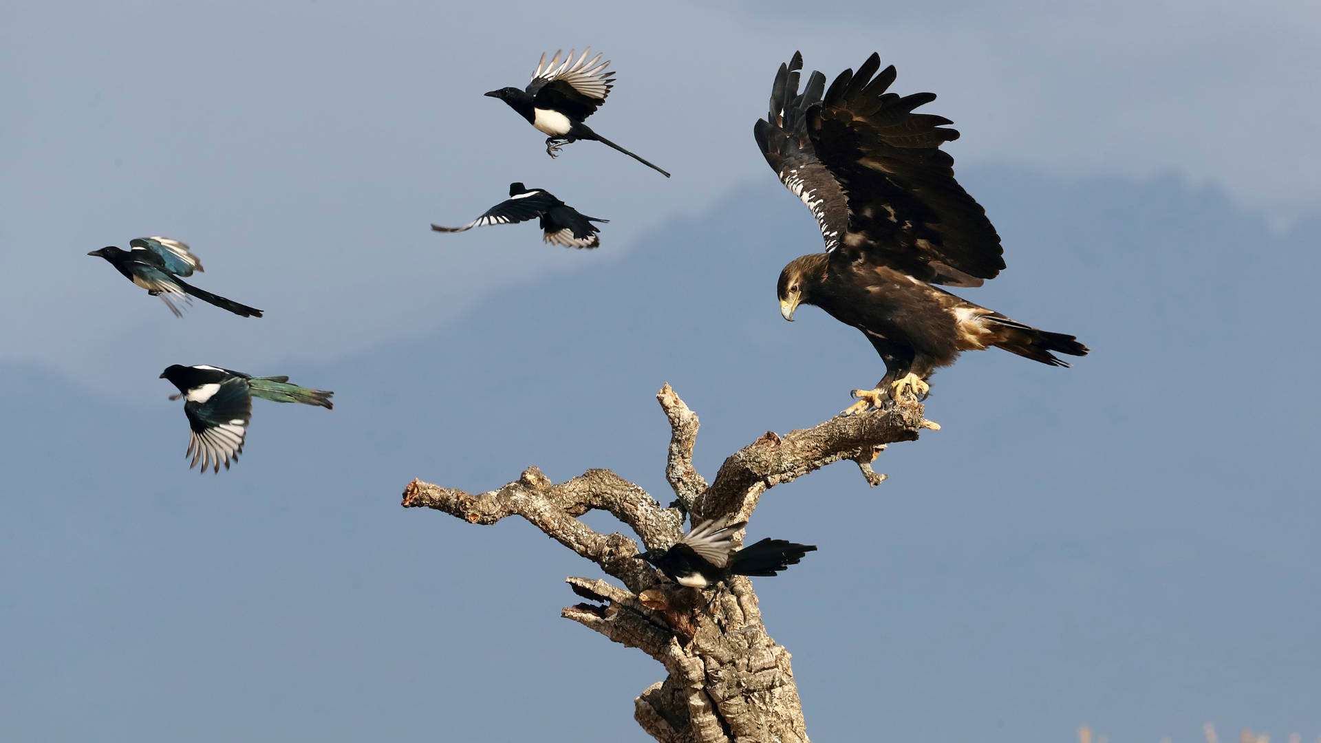 Mammals aren't the only ones that rely on cork oak forests for nesting and hunting. These forests are home to more than 160 bird species, including the Spanish Eagle. Thanks to conservation efforts, the Spanish Eagle population has grown from just 50 breeding pairs in the 1970s to approximately 485 breeding pairs. Despite its population recovery, the eagle still faces numerous threats, such as prey and habitat loss, and collisions with power lines.